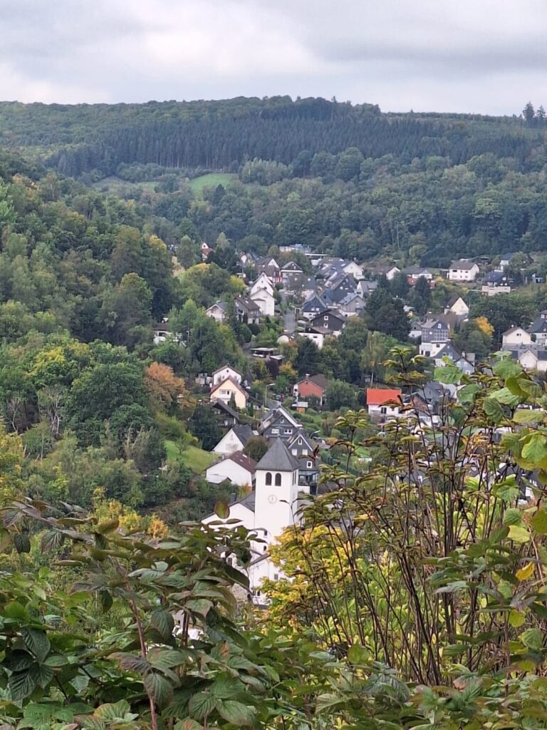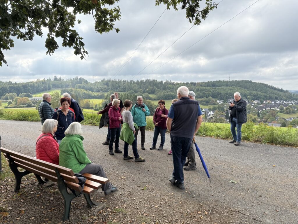 Los ging’s um kurz nach elf – erst gemütlich, dann stetig bergauf. Der Weg forderte etwas, aber er belohnte sofort: immer wieder öffneten sich schöne Ausblicke auf Gosenbach, über Dächer und Baumkronen hinweg, als würde der Ort kurz für uns posieren. Gespräche mischten sich mit Atemzügen, zwischendurch wurde gelacht, stehengeblieben, gezeigt: „Schaut mal da hinten…!“