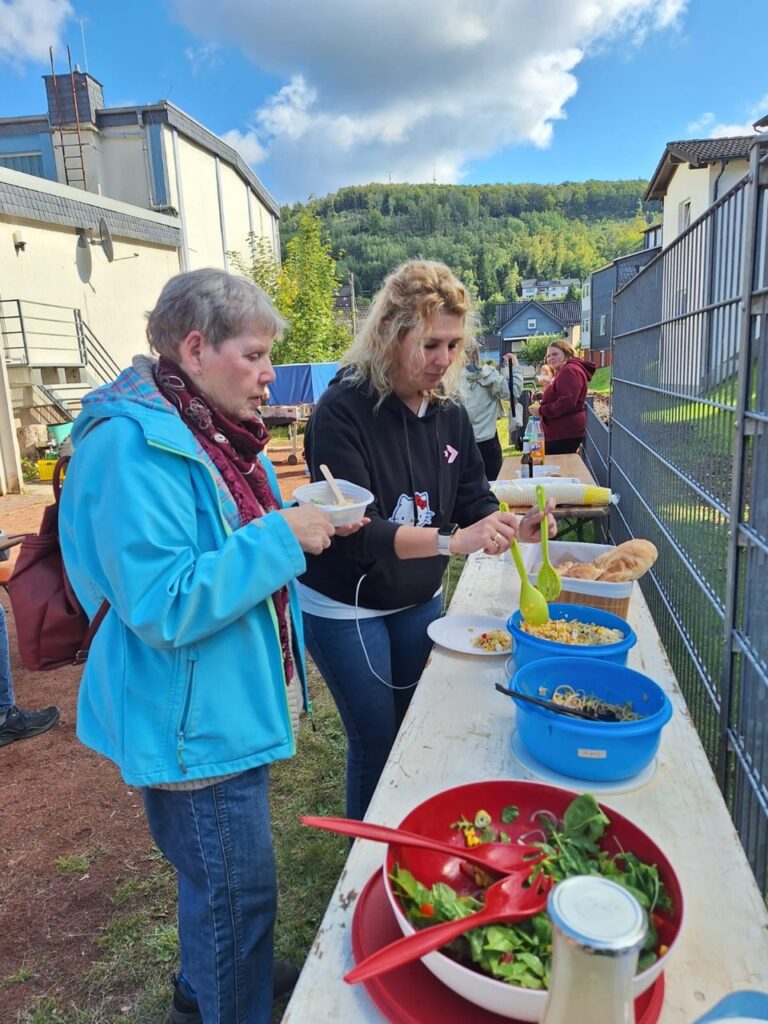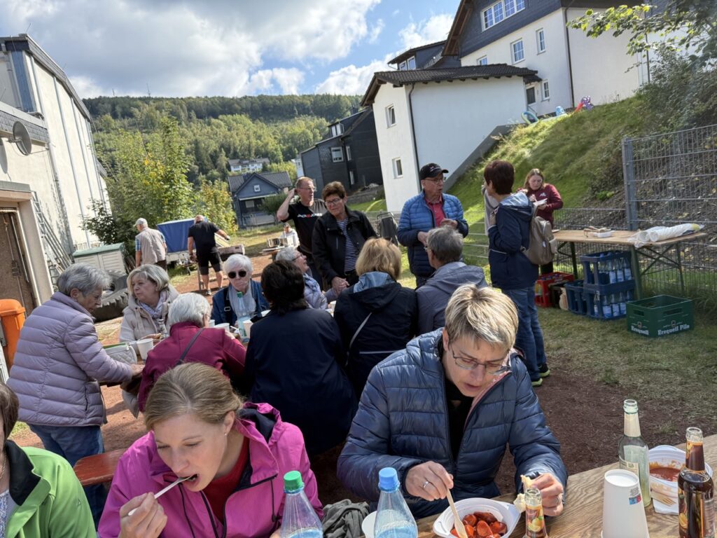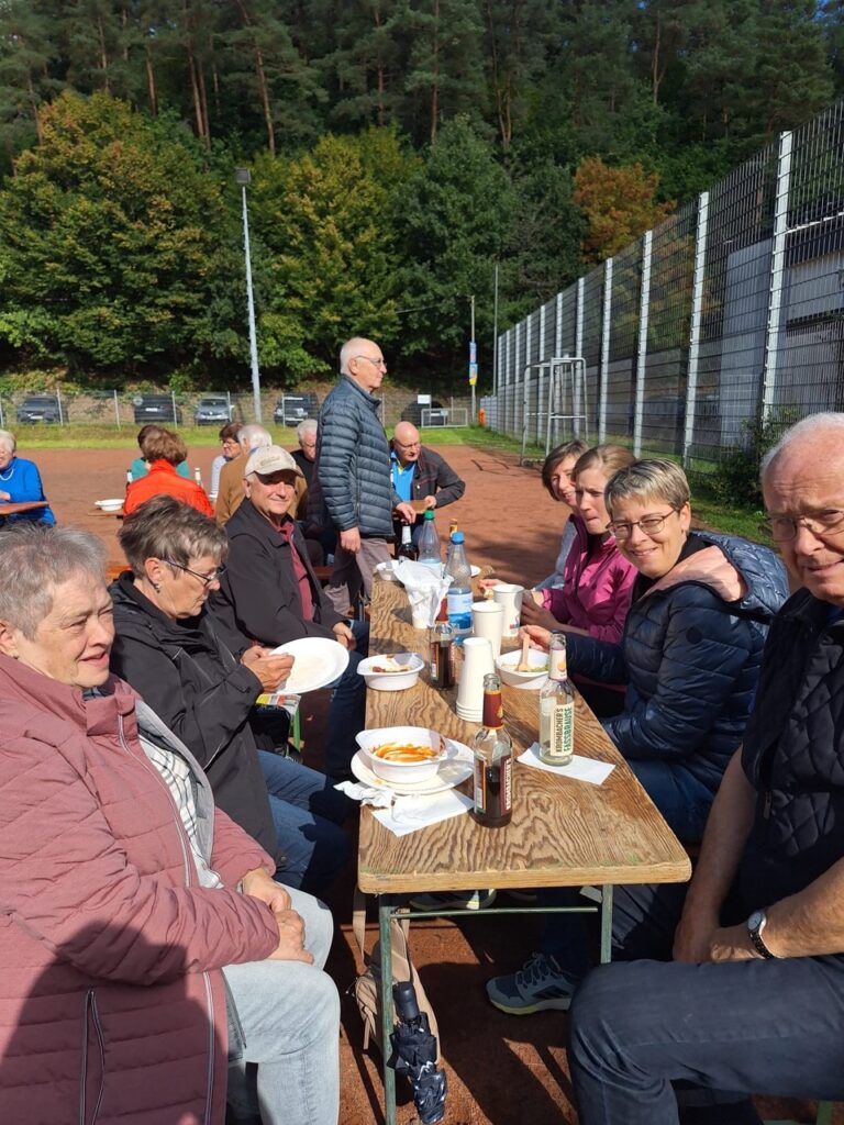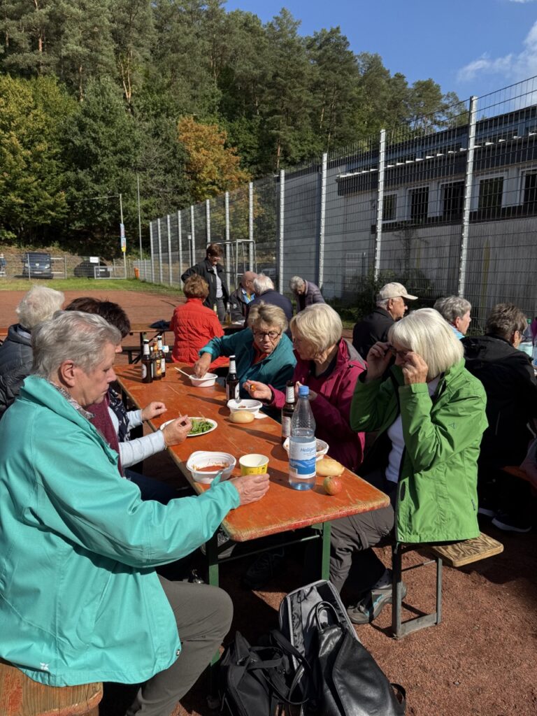 Auf die Wanderer warteten kühle Getränke, Grill- und Currywurst, verschiedene Salate sowie Kaffee und Kuchen. Und fast noch schöner: Viele Mitglieder, die nicht mitgewandert waren, kamen dazu. Es wurde ein geselliger Nachmittag, an dem man zusammensaß, quatschte, lachte – und ganz nebenbei schon erste Ideen für die nächsten Wandertage schmiedete.